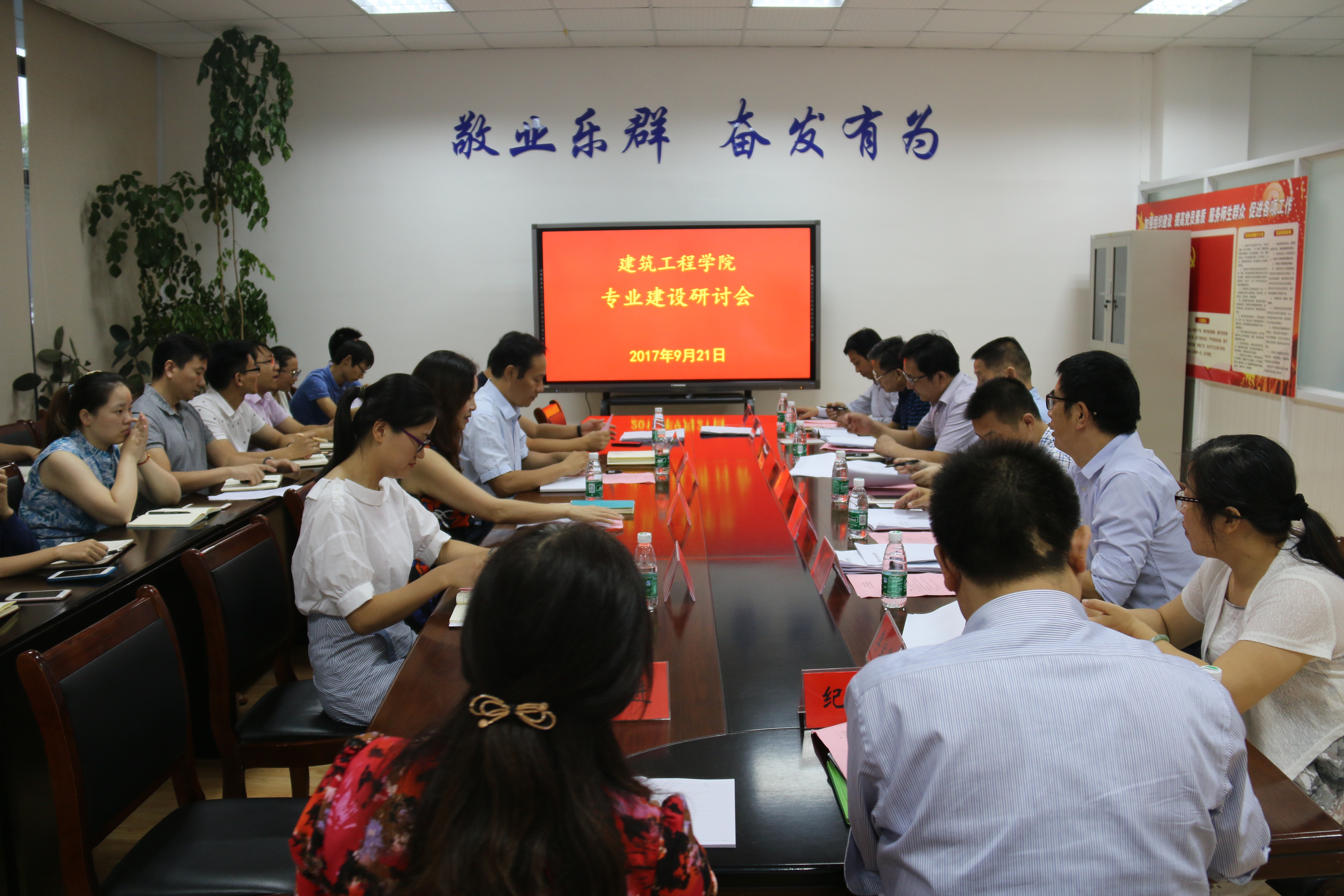 9月21日下午我院召开2017年专业建设研讨会。盐城市建筑业协会秘书长张凤生, 江苏恒业工程管理咨询有限公司、江苏金茂建设集团、江苏民生建设有限公司等企业领导和专家出席研讨会。院长赵华玮、党总支副书记郭泽忠、院长助理付佳佳和胥民尧,学院全体专业教师参加会议。胥民尧主持会议。
