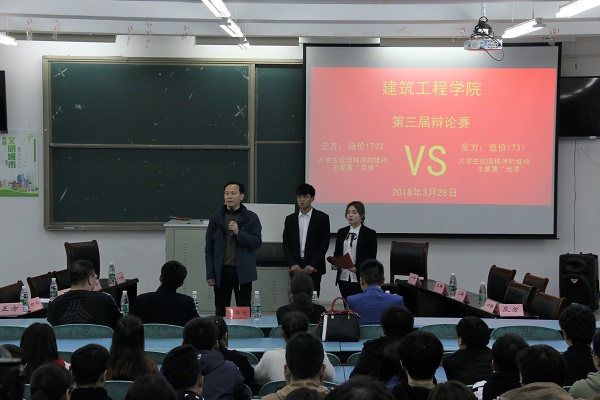 3月28日,建筑工程学院第三届辩论赛决赛在公共教学楼2203教室举行,建筑工程学院党总支副书记郭泽忠,辅导员周伟、曹菊,学生会主要干部担任本次比赛的评委。