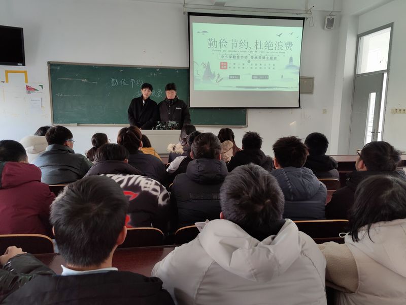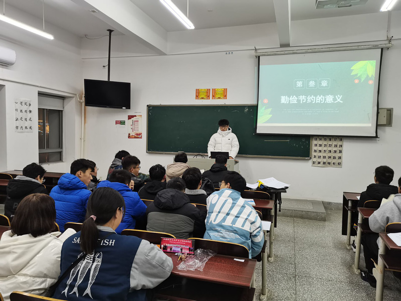 1.召开班级勤俭节约主题班会活动。我院各班级于2月14日晚自习期间集中开展了勤俭节约主题班会活动,本次消防主题班会活动以观看勤俭节约PPT及视频为主,视频内容主要包括粮食安全危机等。同学们认真观看教育片,视频观看结束后,同学们集中就视频内容给予的启示进行了探讨,并书写观后感。