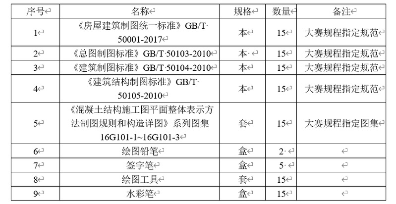 根据2021年江苏省职业院校技能大赛高职组建筑信息建模与应用赛项(JSG202103)赛制要求,技能竞赛内容为建筑工程施工图和BIM模型识读、建筑工程施工图绘制和建筑信息模型建模三部分组成,含工程施工图识读和绘制任务。本次建筑信息建模与应用大赛备赛所需的低值易耗品包括图集、规范、参考书、文具、签字笔等,预计总费用8000元。具体清单如下: