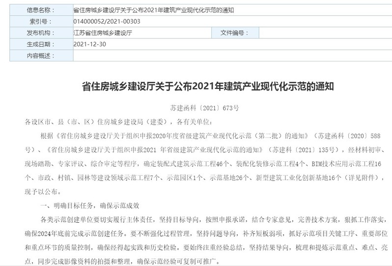 近日,从江苏省住房城乡建设厅官网获悉,由建筑工程学院组织申报的“装配式再生混凝土构件研发创新基地”获批江苏省建筑产业现代化示范新型建筑工业化创新基地,这是2021年继“智能建造虚拟仿真实训基地”获批江苏省职业教育示范性虚拟仿真实训基地后我院取得的又一省级平台项目。