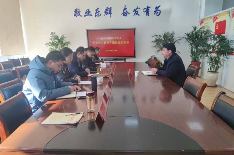 1月13日,建筑工程学院党总支在102会议室召开党史学习教育专题民主生活会。副校长蔺俊到会指导,党总支委员会全体成员参加会议。会议由党总支书记张国兵主持。