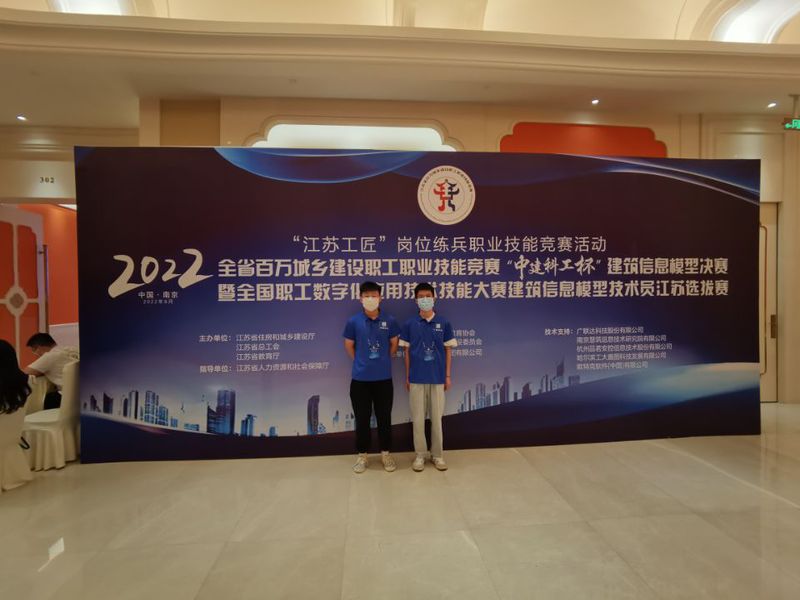 近日,由省住房和城乡建设厅、省总工会及省教育厅联合主办的2022年江苏省百万城乡建设职工职业技能竞赛“中建科工杯”建筑信息模型(BIM)决赛在南京圆满落幕。全省各地企业、院校61支代表队的共150余名选手参加了同场竞技。在齐道正、周凯为主的团队老师的精心指导下,刘涌、刘明轩两位选手沉着应赛,荣获学生组团体第二名,个人分列第3、第4名。