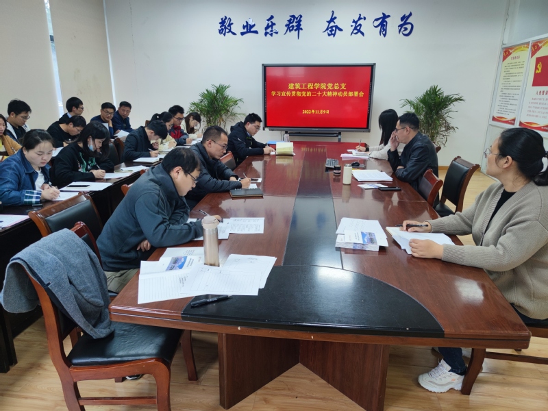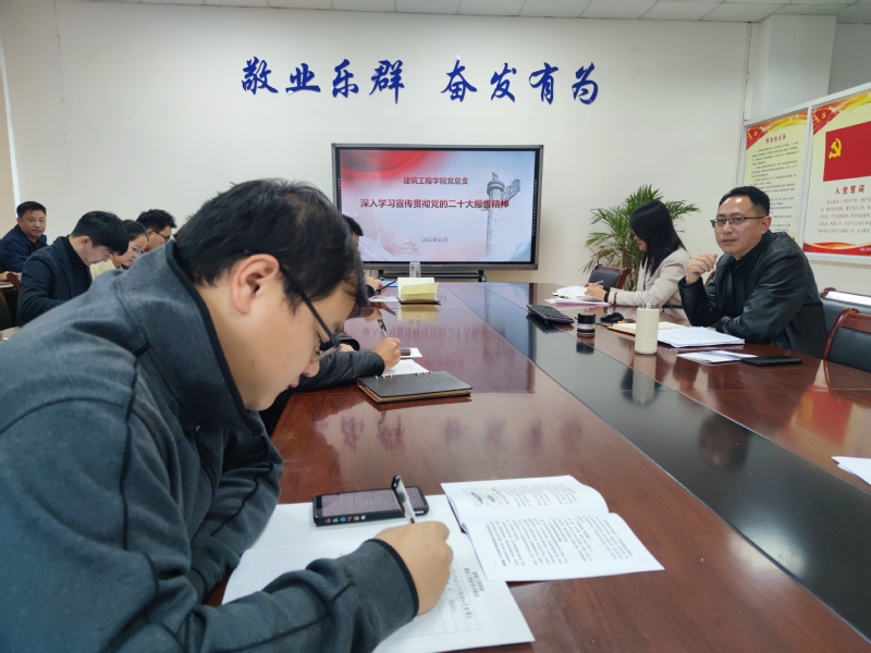 11月9日,建筑工程学院党总支在学院102会议室召开党的二十大精神专题学习报告会。会议由建筑工程学院党总支书记张国兵主持,全体党员教师参加会议。