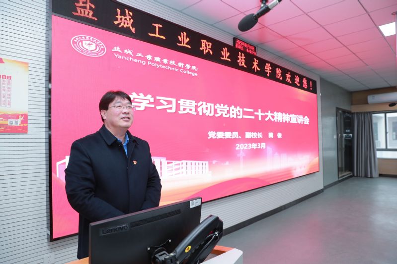 3月17日下午,学校党委委员、副校长蔺俊在公共组团2504智慧教室为联系点党员师生和入党积极分子作《学习贯彻党的二十大精神》宣讲报告。建筑工程学院、信息与安全学院全体中层干部、党员师生、入党积极分子参加了此次学习。
