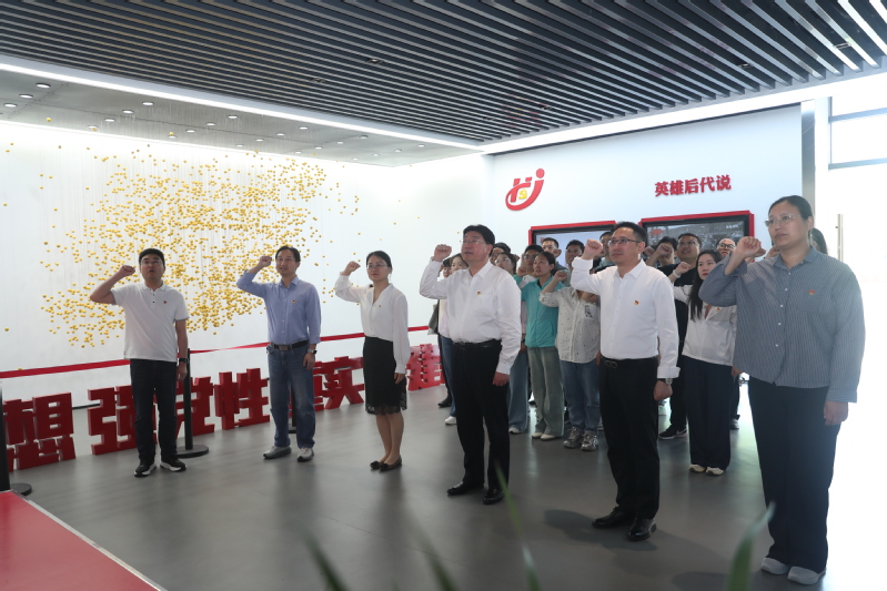 在党性教育基地,大家依次参观了序厅革命火种,点燃盐阜浴血疆场,巍巍丰碑芦荡烽火,鱼水情深前赴后继,英雄辈出五个展区,展区生动还原了建湖革命从星星之火到燎原之势的红色历史,全体成员深入了解建湖地区在革命战争年代的英勇事迹和光辉历程,感受革命先辈们艰苦卓绝的奋斗精神,深刻缅怀革命先烈和英雄前辈。在鲜艳的党旗下,全体党员重温入党誓词,追忆入党初心。