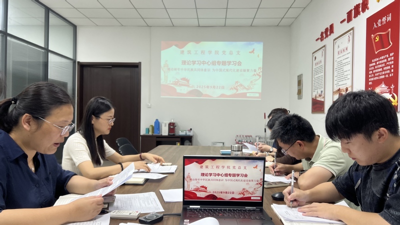 9月22日,建筑工程学院党总支在学院209会议室集中召开二级中心组理论学习会,会议以“推动铸牢中华民族共同体意识 为中国式现代化建设凝聚力量”为主题。会议由党总支书记付佳佳主持,二级中心组全体成员参加学习会。