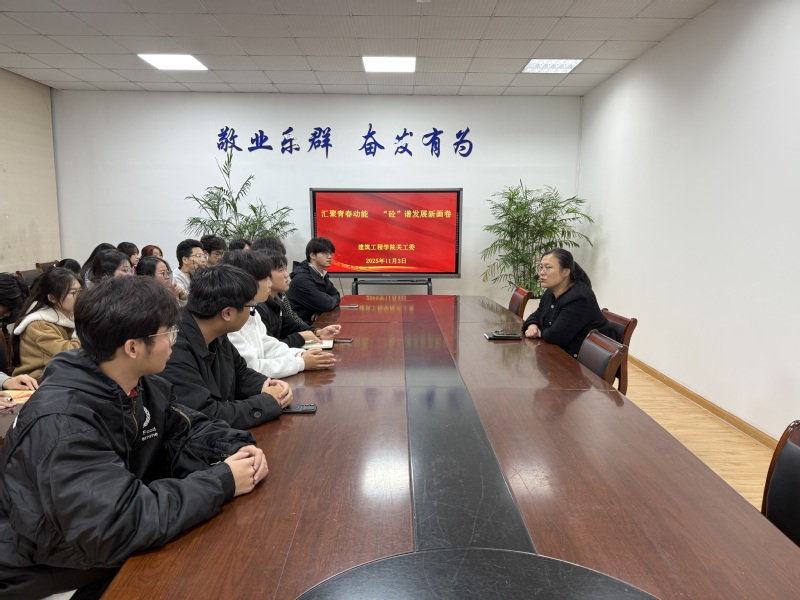11月3日,为进一步凝聚团学工作合力、激发青春奋斗动能,建筑工程学院关工委以“汇聚青春动能,‘砼’谱发展新画卷”为主题,组织召开团学干部座谈会,学院党总支副书记李莉及全体团学干部参加此次座谈会。