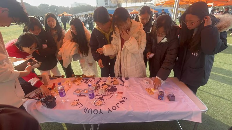 活动现场,我院滑板社、DS舞社的互动摊位前人气高涨。社团成员精心设计了一系列简单有趣的小游戏,邀请过往观众积极参与,参与者只要完成游戏挑战,就能获得零食、挂件、玩偶等精美小礼物。社团成员根据游戏难度合理分配奖品等级,既保证了游戏的趣味性,也提升了观众的参与热情,现场欢声笑语不断。