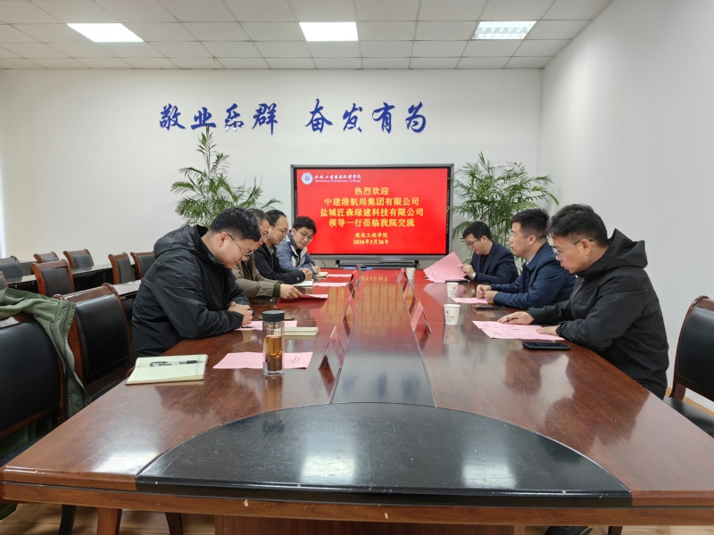 3月26日下午,中建港航局集团有限公司、盐城匠森绿建科技有限公司来我院开展交流工作。交流活动在学院102会议室举行,建筑工程学院院长胥民尧及部分骨干教师参与交流活动。