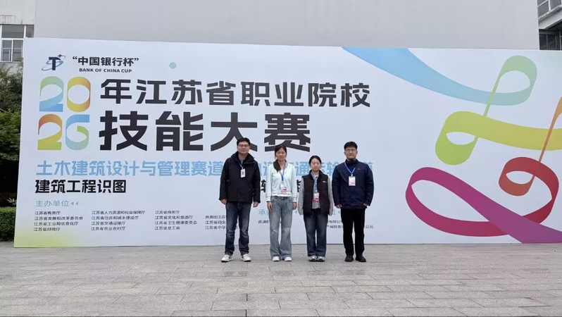 近日,2026年江苏省职业院校技能大赛高职土木建筑类赛道圆满落幕。在“装配式建筑智能建造”赛项中,我院吴彦文、张自昂、张旭三名同学在指导教师吴春杨、李达的指导下荣获学生组一等奖;在“建筑工程识图”赛项中,刘昌彤、张愉嘉两名学生在指导教师袁开军、戴阜老师的指导下荣获一等奖,戴阜老师参加教师组荣获三等奖;在“建设工程数字化计量与计价”赛项中,杨意鹏、方海生、金斌三名学生在指导教师顾聪、张静的指导下荣获二等奖,顾聪参加教师组荣获三等奖;在“建筑信息模型建模与应用”赛项中,樊倩彤、席荟、杜兴甜三名学生在指导教师王惠民、陈惠惠的指导下荣获二等奖。
