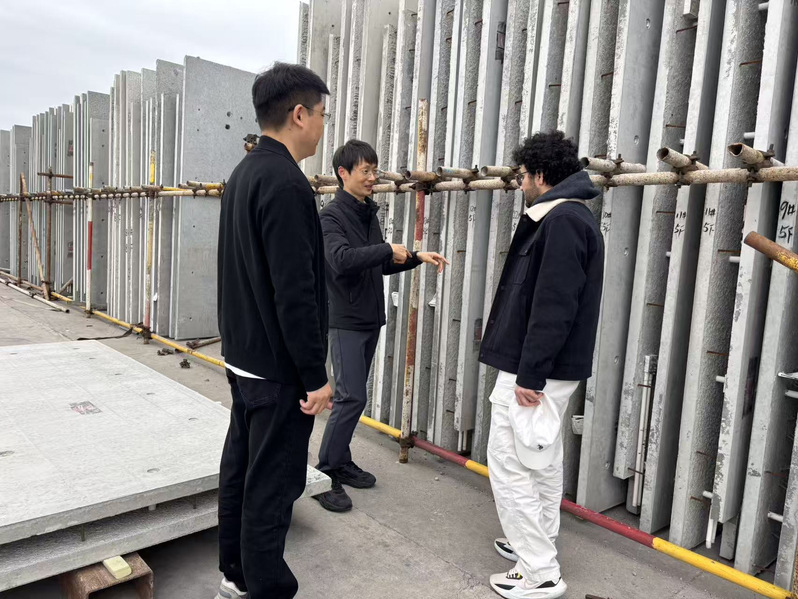 随后,意大利米兰理工大学高级访问学者Mahmoud Kamel博士在王耀的陪同下,赴江苏千和装配式建筑科技股份有限公司参观交流,全国劳动模范、全国五一劳动奖章获得者、江苏千和装配式建筑科技股份有限公司总工程师陈跃热情接待并陪同参观。参观过程中,Mahmoud Kamel博士一行深入企业生产一线,详细了解了企业在装配式建筑领域的发展历程、技术应用、生产流程及实践成果,并围绕装配式建筑技术发展、人才培养及校企合作等内容与技术负责人进行了深入交流。王耀结合学院实际,介绍了学院在专业建设、实践教学和校企合作等方面的基本情况,希望进一步加强学院、企业与国际学者之间的沟通联系,持续拓展合作空间。